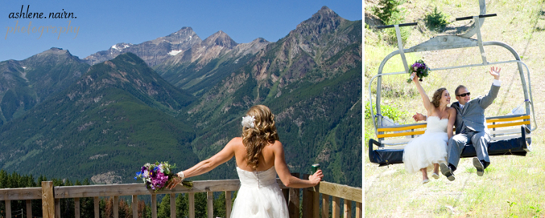 One of the highlights of the day was definitely the chair lift ride up the mountain for the ceremony. It was so quiet and calming and such a great admittance in to the proceedings of the day. The summer sun and cool mountain air made for perfect weather for the yard games and mingling that pursued the ceremony and lead in to the wonderful reception.