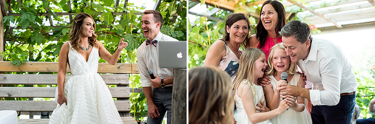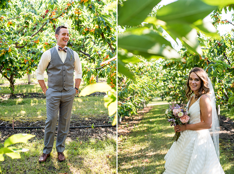 Jenna and Toby’s orchard wedding was the most interactive wedding I’ve ever photographed. They had so many unique and fun ways to engage their guests it kept the energy among everyone so high all night. They had people up to the podium singing all kinds of Disney songs, showing off dance moves, and the MC’s even had an array of guests helping them unfold a hilarious act about Jenna and Toby’s love for travel.