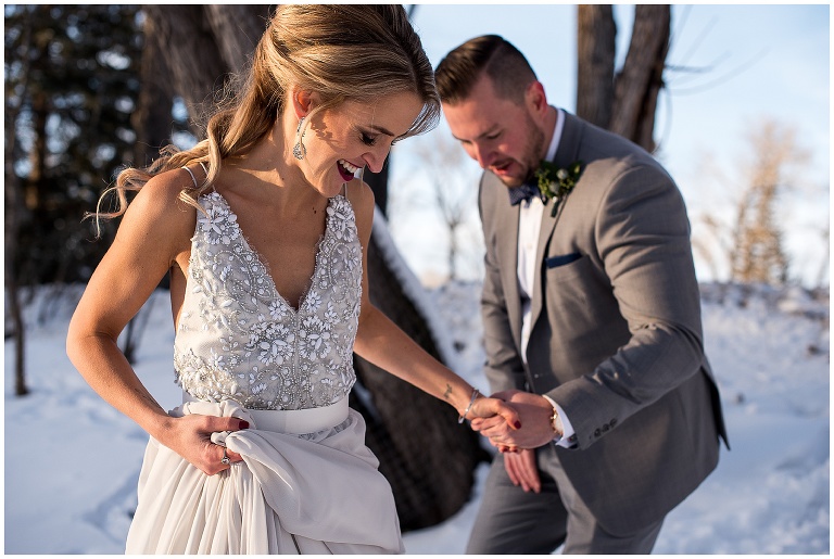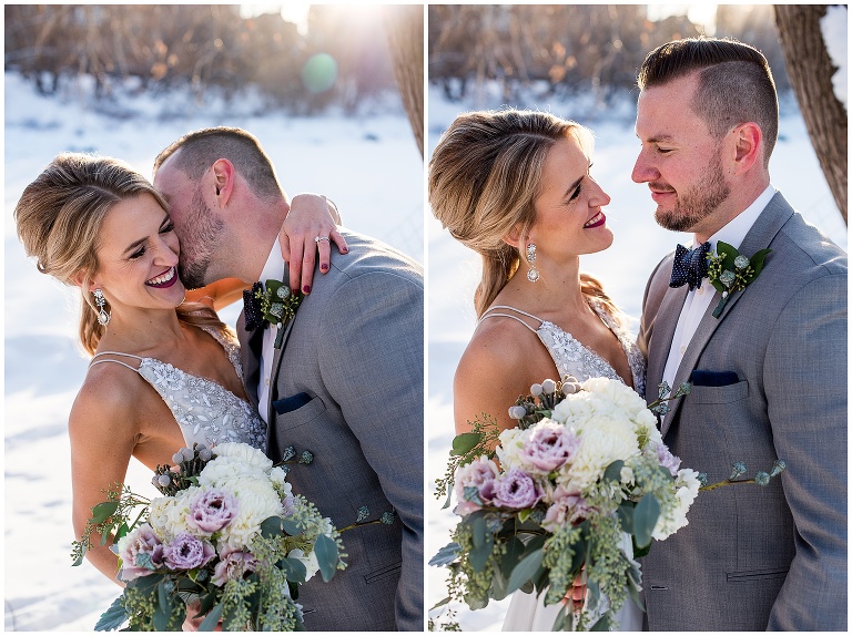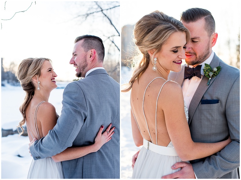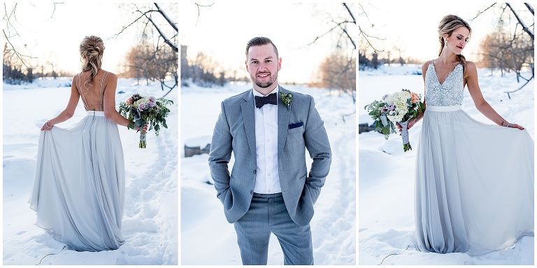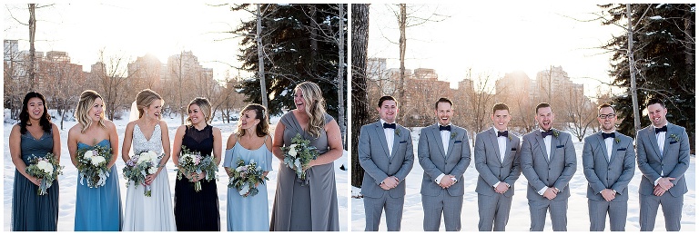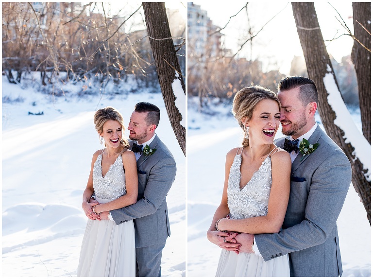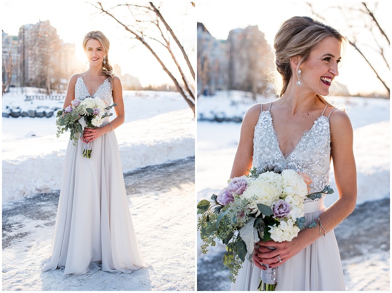 2. Weather: this was a CALGARY winter wedding, and anyone who knows Calgary, knows it can get VERY cold. As someone who loves being outside, and feels more comfortable photographing in natural spaces, I was worried how the weather, and potential cold, would affect the portraits for Courtney and Patrick’s wedding. Courtney and I had a lot of communication about this before hand, and we decided if the weather cooperated we both definitely preferred to do the portraits outside, but we knew we needed a back up plan just in case. We came up with a couple of indoor options for doing portraits if it came to it. Although we were crossing our fingers we didn’t have to use the back up spaces, it was really important to have that organized so we felt prepared, and didn’t waste any time day of. Luckily, Calgary had one of their infamous ‘chinooks’ and we were blessed with great weather that day! – as you’ll see with Courtney braving bare shoulders through 95% of the portraits!
