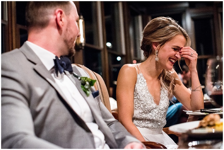 The main challenge that the 5pm sunset created was for the reception. All photographers would love to have that soft evening light billowing through the windows for every wedding reception but for this winter wedding, there was no natural light at all. I decided, instead of introducing a flash, which I personally think changes the look and feel of photos quite a lot, I would adjust my camera settings and work with the ambient light to give the photos a more ‘grainy’ film look. I think it suits the feel of a dark winter wedding perfectly!