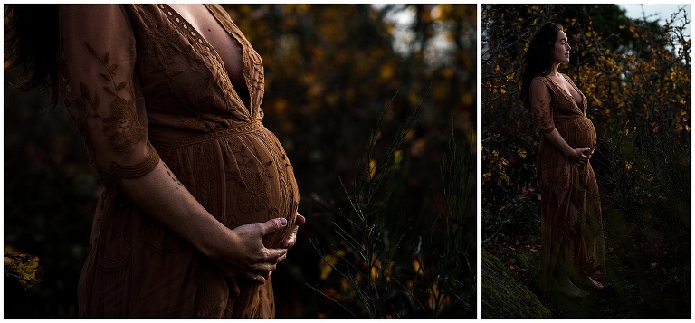 Throughout my own pregnancy I’ve been documenting my days in a journal- writing to my little baby-to-be about what it’s been like for me to grow them. I recently went back and read some of the stuff I wrote in those earlier months. Most of it is pure awe over what’s happening inside me. The exclamations of wonder are coupled with a report on how I’ve been feeling. It’s so wild how every new week brought a new challenge. Total and complete exhaustion, lack of motivation, nausea, crying, heartburn, bloating, gagging – oh SO MUCH gagging, insomnia, and on… But through all the list of ‘symptoms’, there’s so many little illustrated hearts, and ‘I can’t wait to meet you’s’, and ‘I can’t believe I’m creating LIFE’. The most common word I noticed throughout was… this is ‘WILD’. And I think that’s why these photos of Rebecca’s Victoria BC Maternity photography session resonate with me so much, because they have a truly wild feel to them- which is exactly how I feel about the entire pregnancy experience.