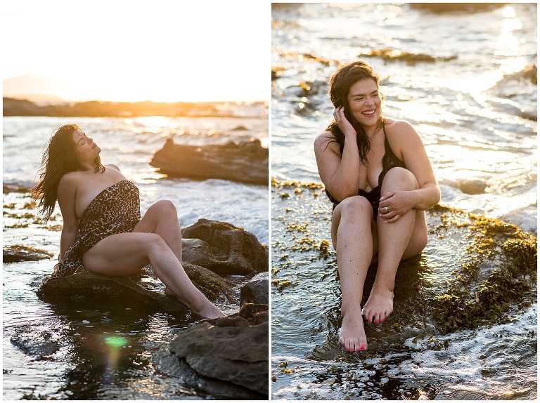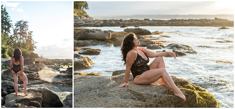 The stairs I sat on for my goddess session are one of my favourite places in this world – behind is rich forest and in-front a beautiful rocky beach. Hornby island is where I grew into a woman. This spot is where I come to connect back to myself, to reflect, to feel grounded again. It was a magical evening – the sun was setting, the wind was a strong force and the ocean was wild and fierce. There was this beautiful connection between my body and mother nature with the elements reflecting how I was feeling – wild, free and bold just as I am.